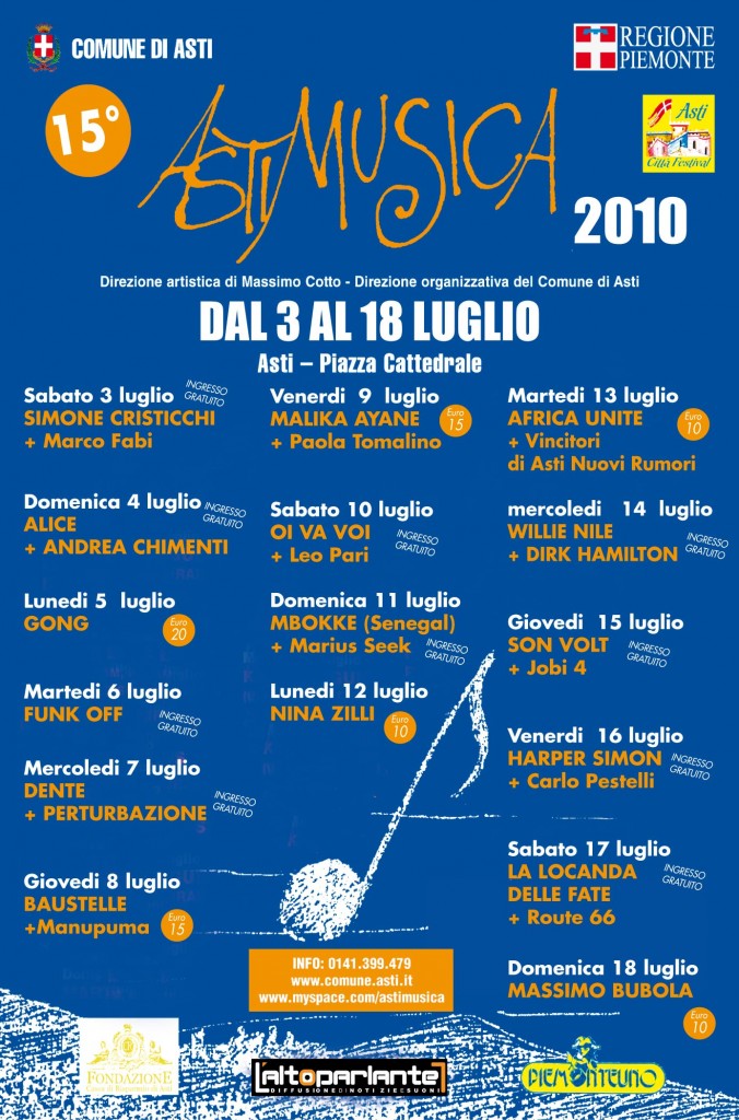 io non consiglio nulla stavolta o forse si i Gong o Bubola,wow ma per me Asti e’ lontana:-)