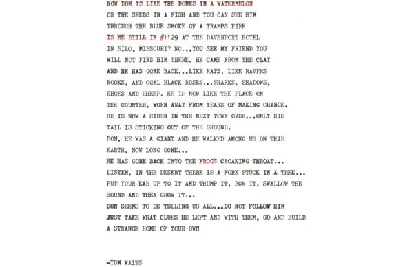 Tom Waits has written a poem dedicated to Captain Beefheart.